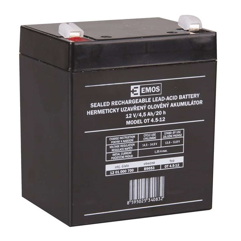 ► Olovený akumulátor ► Napätie: 12 V► Kapacita: 9 Ah ► Rozmer (š x h x v): 151 x 65 x 95 mm► Hmotnosť: 2,42 kg * Životnosť udávaná výrobcom akumulátorov je priemerne 2-5 rokov, v prípade používania v záložnom režime za pracovných podmienok akumulátorov podľa inštrukcií výrobcu* Pre cyklický režim akumulátorov sa garantovaná životnosť a záruka 24 mesiacov nevzťahuje* Akumulátory sú citlivé na prebíjanie. Výrobca preto najčastejšie odporúča používať metódu dobíjania konštantným napätím.* Udržujte mimo dosahu detí (hrozí poleptanie), Neskratovať, nerozoberať, Nevhadzovať do ohňa. Po použití nabyť. Pozor na polaritu. Zabráňte hlbokému vybitiu! ► Uchovávajte mimo dosahu detí!