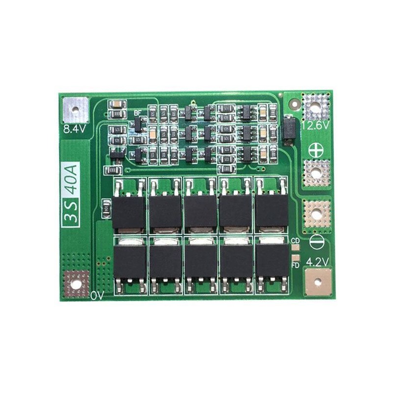 Ochranný a nabíjecí modul pro tři Li-Ion nebo LiFePO články s kontrolou každého článku samostatně.Vhodné pro jmenovité napětí lithiové baterie 3,6V, 3,7V (Včetně 18650 26650, lithium-polymerovýchbaterií)Specifikace:- nabíjecí napětí 12,6–12,7V-ochrana proti zkratu-ochrana proti přetížení (max.40A)-ochrana proti přebíjení <4,20V-ochrana proti vybití >2,54V-max.zátěžový proud 40A-max.nabíjecí proud 20A-rozměry 42×60×3,4mm/9g .Výrobek není samostatně funkční celek, vyžaduje odbornou montáž.