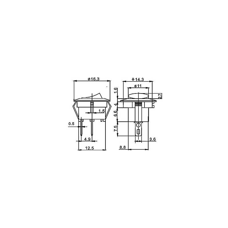 ► Prepínač páčkový s krytkou► 6-PIN(3pin+3pin)► 2 polohy (ON,ON)► Maximálne zaťaženie: 250V DC/10A► Vhodný konektor: Dutinka 6,3mm► Montážny otvor: 12mm ► Celková výška: 56,2mm► Výška nad plošnou doskou: 26,7mm (podľa nastavenia)► Hĺbka: 29,5mm s kontaktmi (podľa nastavenia)► Rozmery tela: 31,8x19,5x56,2mm