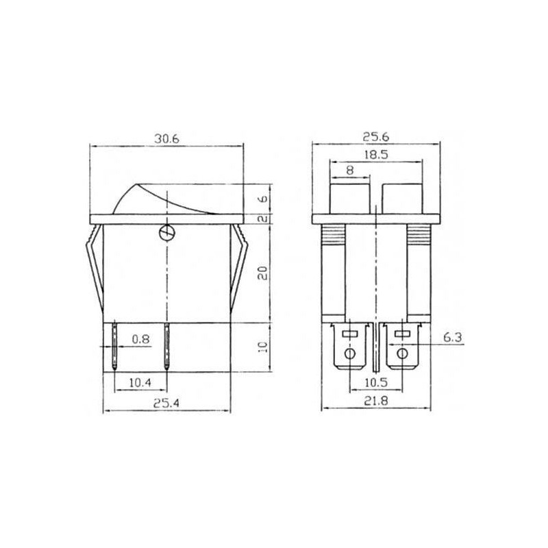 ► Prepínač páčkový s krytkou► 6-PIN(3pin+3pin)► 2 polohy (ON,ON)► Maximálne zaťaženie: 250V DC/10A► Vhodný konektor: Dutinka 6,3mm► Montážny otvor: 12mm ► Celková výška: 56,2mm► Výška nad plošnou doskou: 26,7mm (podľa nastavenia)► Hĺbka: 29,5mm s kontaktmi (podľa nastavenia)► Rozmery tela: 31,8x19,5x56,2mm