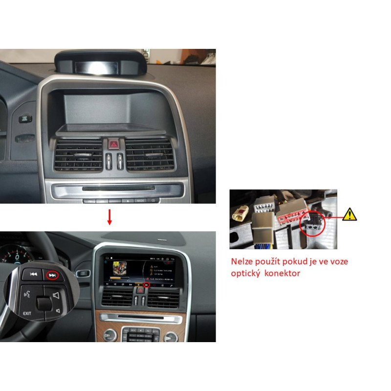 UPOZORNĚNÍ: Jelikož nemusí být zaručena kompatibilita a funkčnost se všemi modely vozů, doporučujeme vždy nejdříve zařízení připojit a odzkoušet všechny funkce (ovládání z volantu, aktivace, ....) a až po úspěšném odzkoušení rádio namontovat.