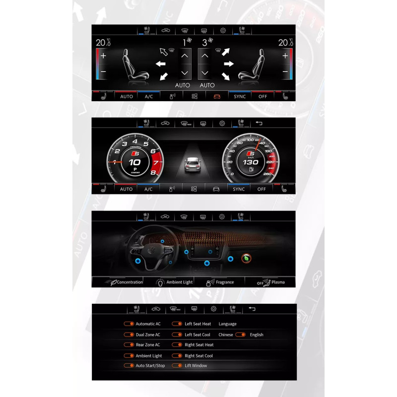 Mimo ovládání klimatizace lze panel přepnout také do režimu zobrazení tachometru a otáčkoměru.