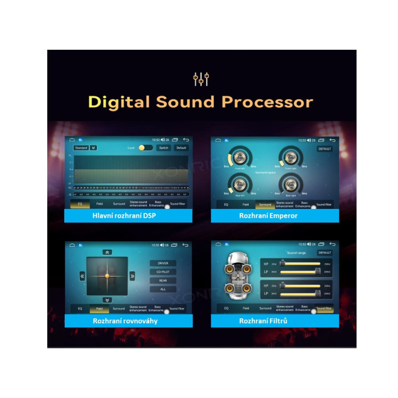 ► Multimediálne autorádio v OEM tvare s operačným softvérom Android, Wi-Fi, GPS, Bluetooth, CarPlay, Mirror link, 4G.