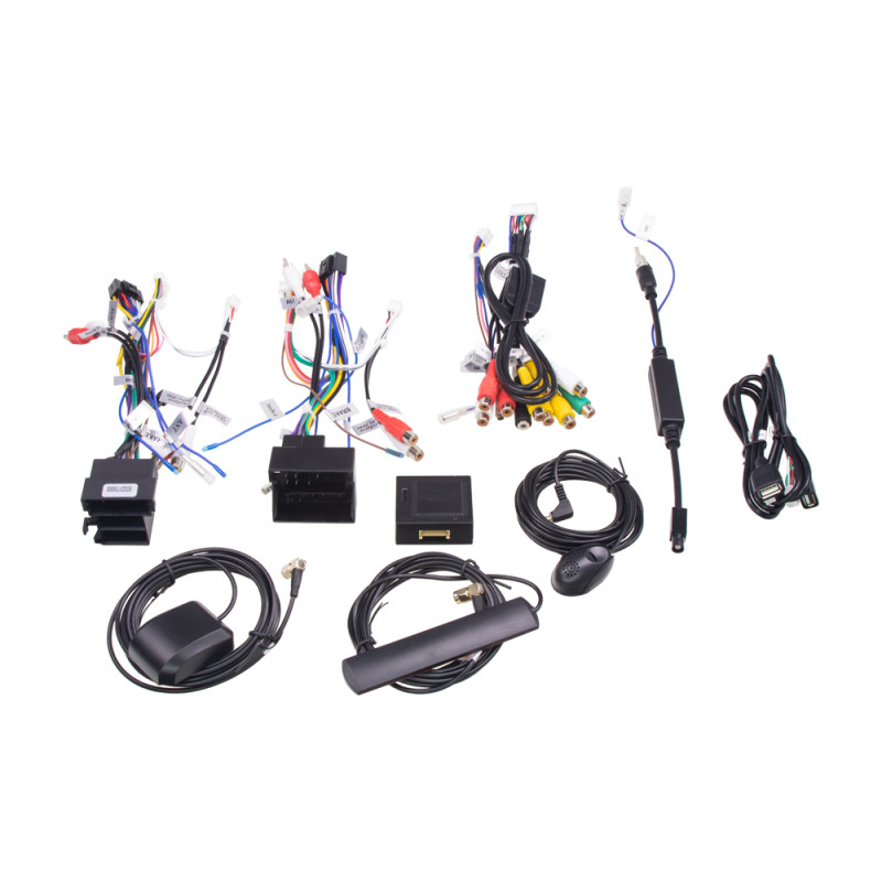 ► Inštalačný materiál a súčasti:- 1x napájací zväzok s CAN modulom- 2x pripojovací USB kábel- anténna redukcia- GPS anténa- 4G anténa- 3x AV zväzok- externý mikrofón