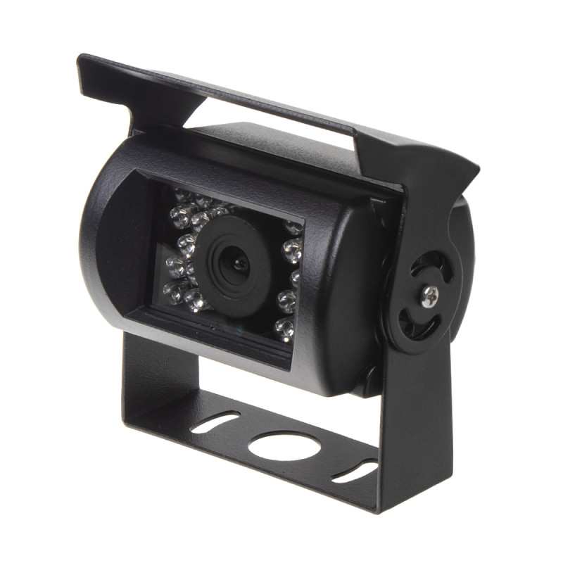 Kamera CCD s IR světlem, vnější, určená pro montáž především na nákladní vozy, autobusy, karavany či dodávky. Propojení 4-PINovým kabelem.