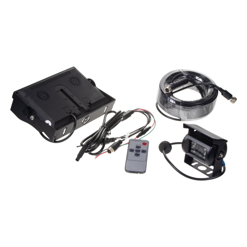 V balení je LCD monitor + kamera + 15m propojovací kabel 4-PINový + dálkové ovládíní. LCD monitor 7" s protisluneční clonou, širokým úhlem pohledu a displej s vysokým rozlišením.