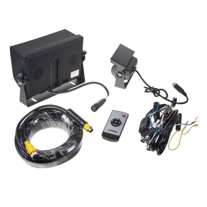 V balení je 9" LCD AHD monitor + AHD 720P kamera + 15 m propojovací kabel 4PINový + dálkové ovládání.