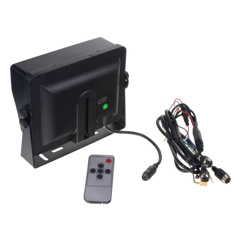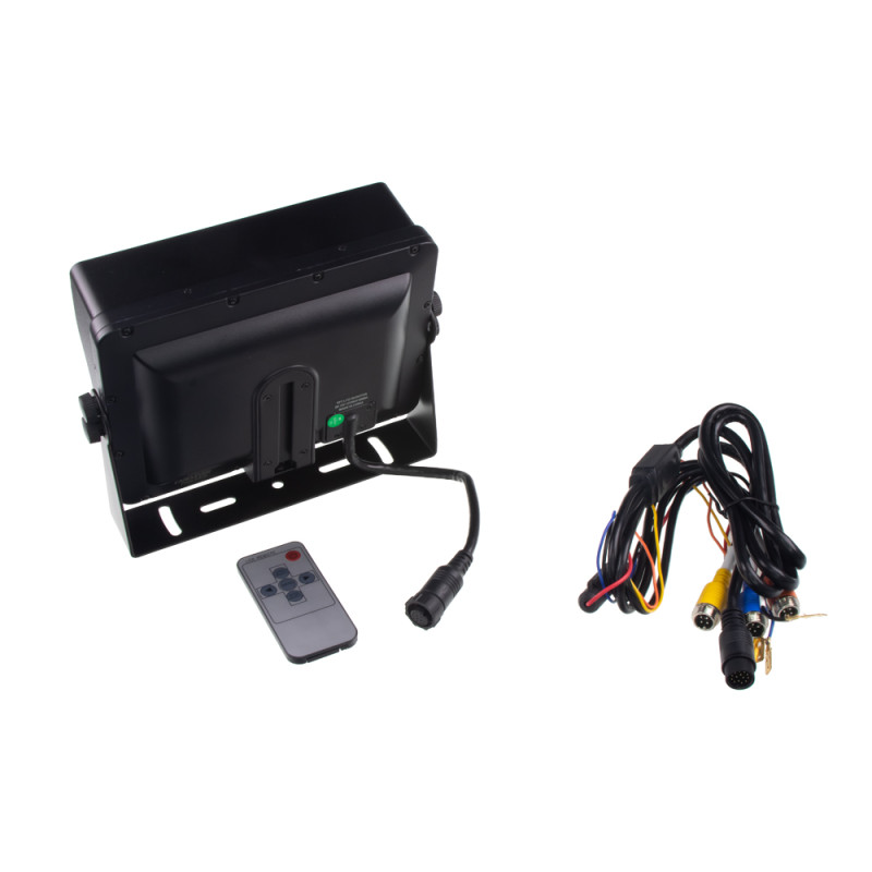 V balení je LCD 7" monitor + dálkové ovládání + dvě provedení držáku monitoru.
