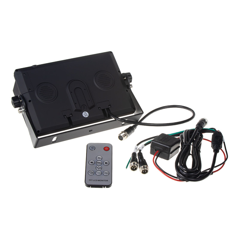 V balení je LCD 7" monitor + dálkové ovládání + dvě provedení držáku monitoru.