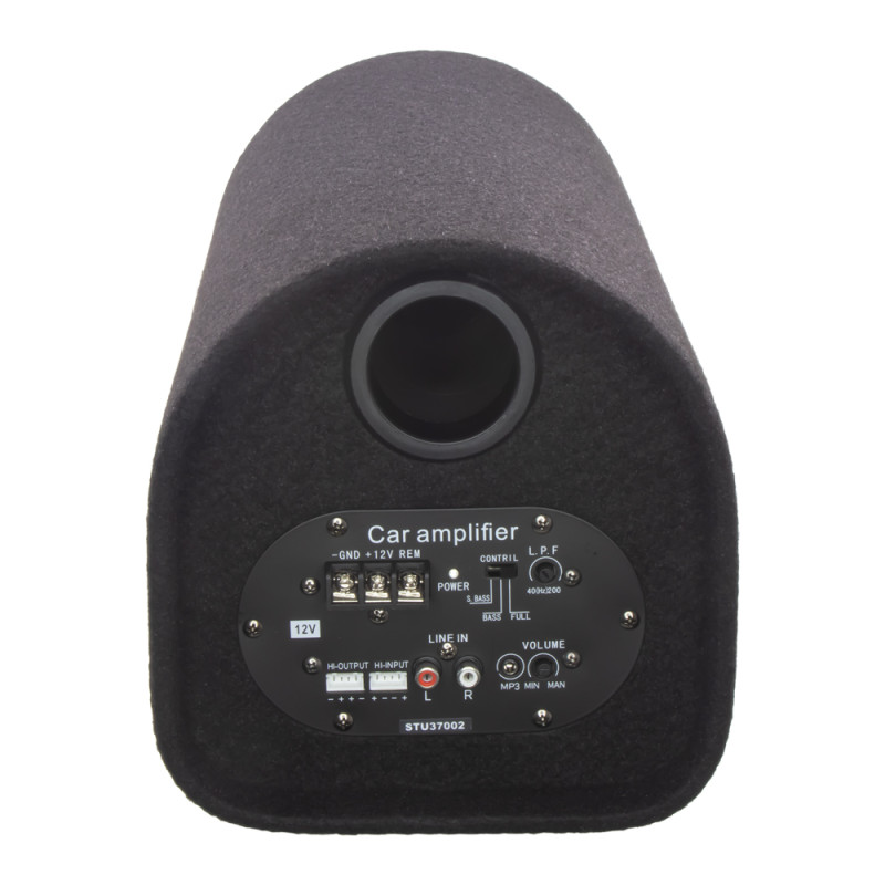 Aktivní subwooferový box se zesilovačem a reproduktorem o průměru 200 mm vhodný pro instalaci např. pod sedadlo.