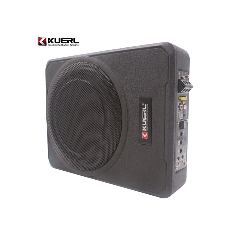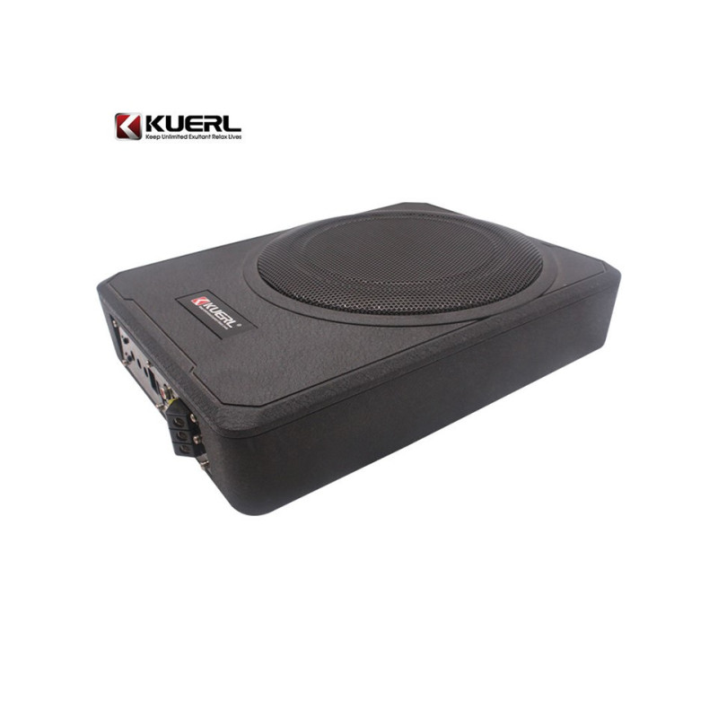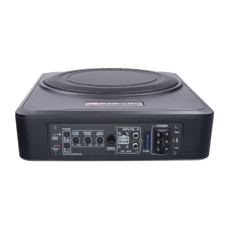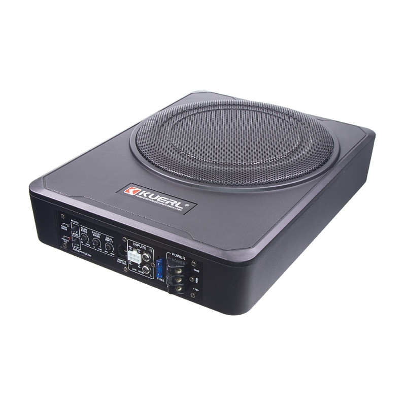 Aktivní subwooferový box se zesilovačem a reproduktorem o průměru 250 mm vhodný pro instalaci např. pod sedadlo.