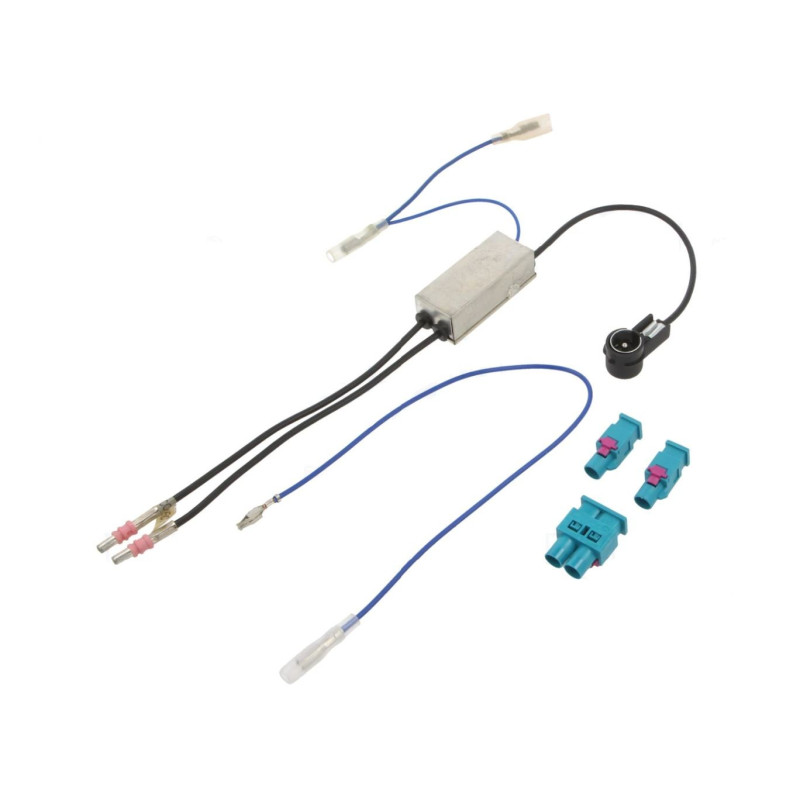 ► Autoanténny adaptér pre inštaláciu autorádia s DIN anténnou zásuvkou do automobilov s ISO anténým konektorom pri výmene originálneho autorádia za neoriginálne ► Umožňuje fantómové napájanie zabudovaného zosilňovača v anténe cez koaxialny kábel aunoantény► Modrý kábel sa zapája na výstup z autorádia (remote control), príp. na +12V po zapnutí zapaľovania s nalisovaným ISO pinom pre ľahké zapojenie do ISO konektora ► Autoanténny konektor od antény v automobile: ISO konektor ► Anténny konektor na montovanom autorádii: DIN zdierka