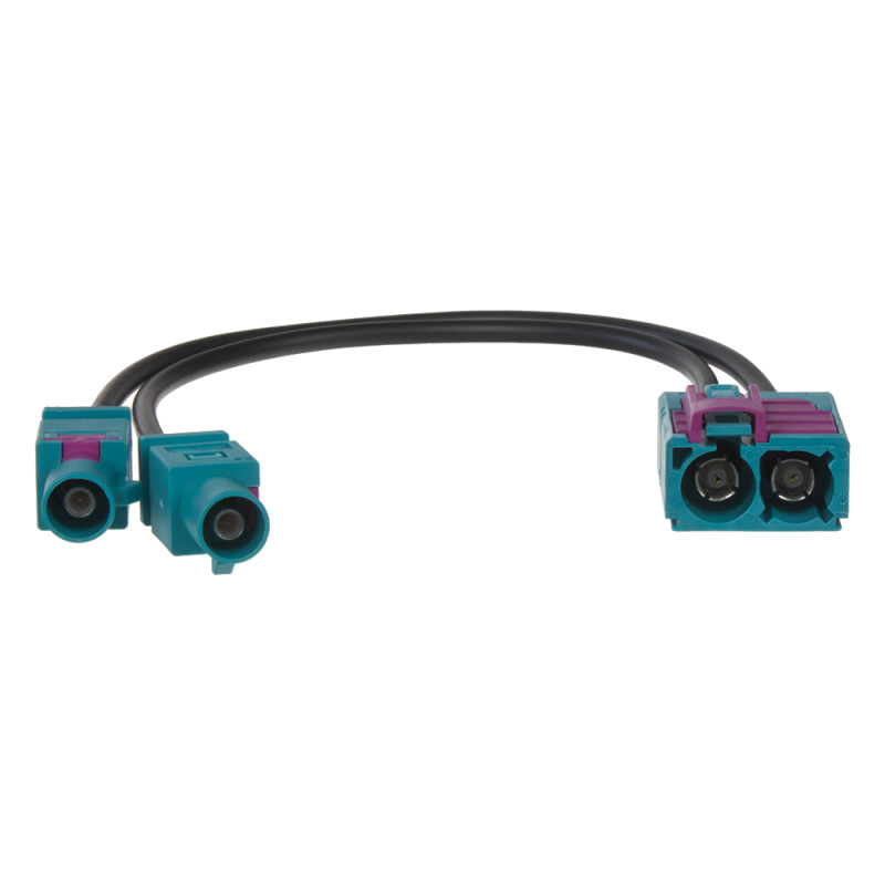 Anténní adaptér dvojitý Fakra samec - 2x Fakra samice, vhodné pro všechny vozy s dvojitým Fakra anténním konektorem.