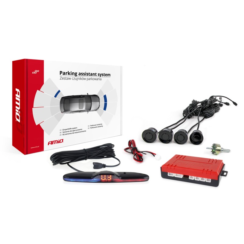 ► Súprava obsahuje:4 čierne detektory LED displej so zabudovaným bzučiakom 4-senzorová riadiaca jednotka dierová píla na vŕtanie otvorov do nárazníka.pokyny na inštaláciu