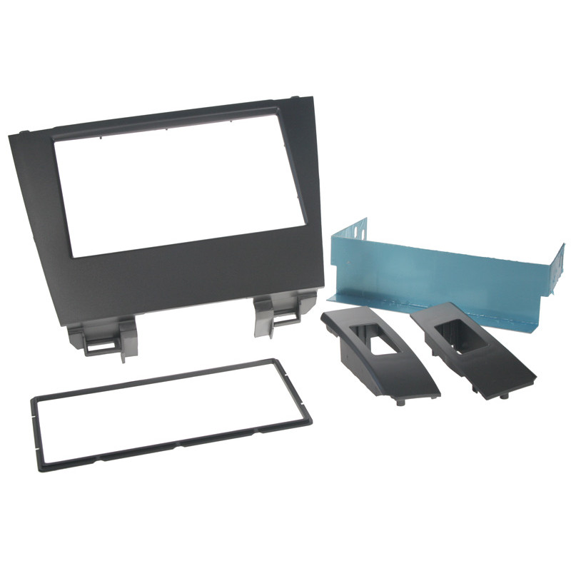 Plastový adaptér v tmavě šedivé barvě s kovovým rámečkem slouží pro montáž neoriginálního 2DIN autorádia.