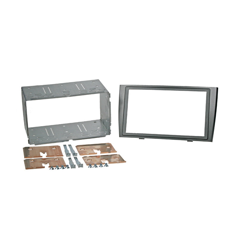 Plastový adaptér v antracitové barvě + kovový rámeček slouží pro montáž neoriginálního 2DIN autorádia.