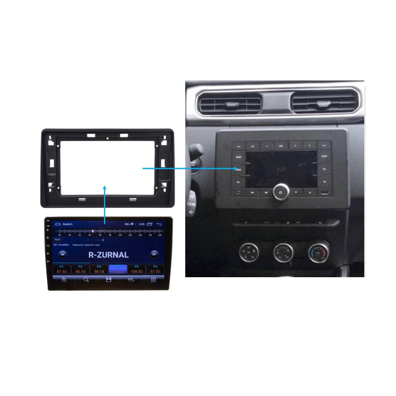 Plastový adaptér slouží pro montáž neoriginálního autorádia o velikosti 10".