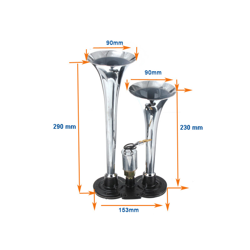 2- trubková fanfára se vzduchovým zásobníkem, určená pouze do vozidel s vlastním rozvodem stlačeného vzduchu. Pěkný design i způsob uchycení umožňují pohledovou montáž na karoserii vozu. Vzduchový zásobník prodlouží a zjemní zvukový tón, který bude příjemnější pro okolí.