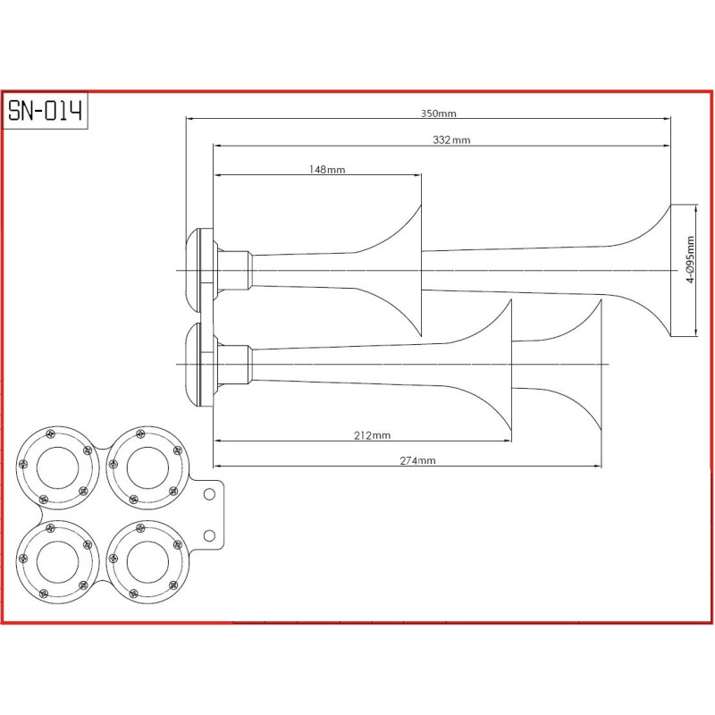 2- trubková fanfára s velice výrazným zkukovým projevem, určená pouze do vozidel s vlastním rozvodem stlačeného vzduchu. Pěkný design i způsob uchycení umožňují pohledovou montáž na karoserii vozu.