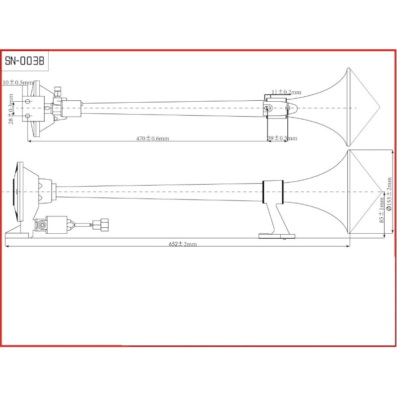 2- trubková fanfára se vzduchovým zásobníkem, určená pouze do vozidel s vlastním rozvodem stlačeného vzduchu. Pěkný design i způsob uchycení umožňují pohledovou montáž na karoserii vozu. Vzduchový zásobník prodlouží a zjemní zvukový tón, který bude příjemnější pro okolí.