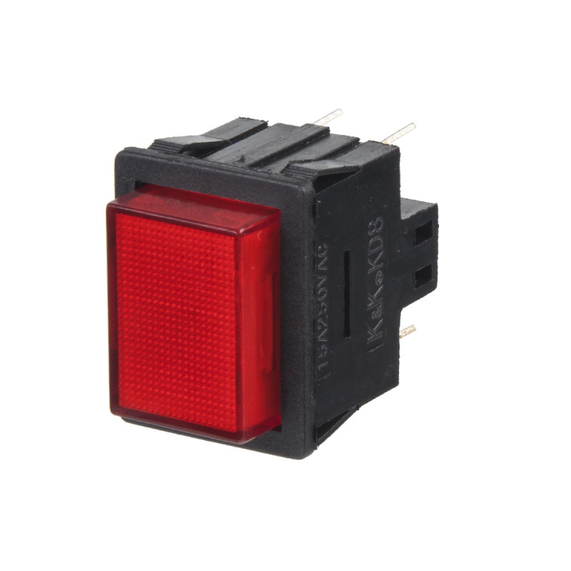 Tlačítko kulaté 8 A / 125 V - 5 A / 250 V, červené tlačítko, ø otvoru 20 mm, ø 23 mm, hloubka 27 mm ( s kontakty)