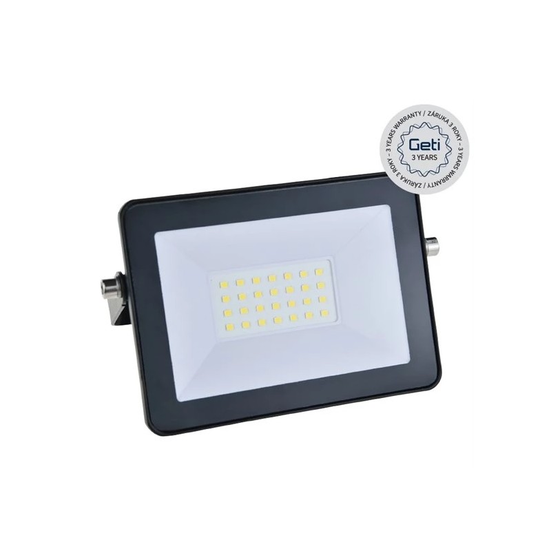 ► LED reflektor Geti GLF20 je plnohodnotnou náhradou halogénových reflektorov s úsporou až 70% energie. Po zapnutí svieti okamžite v plnej intenzite. Je osadený výkonnými SAMSUNG diódami a preto dosahuje vysoké svietivosti. Ide o vyhotovenie SLIM čo znamená, že reflektor je menší, tenší a ľahší, vďaka čomu je možné ho umiestniť takmer kamkoľvek. Pri reflektore možno ľubovoľne nastaviť jeho polohu vďaka polohovateľnému držiaku, ktorý v sebe má už diery na uchytenie. LED reflektor je v celokovovom prevedení s bezpečnostným sklom, je odolný proti dažďu a vlhkému prostrediu, preto nájde uplatnenie ako pre vnútorné, tak aj vonkajšie použitie.
