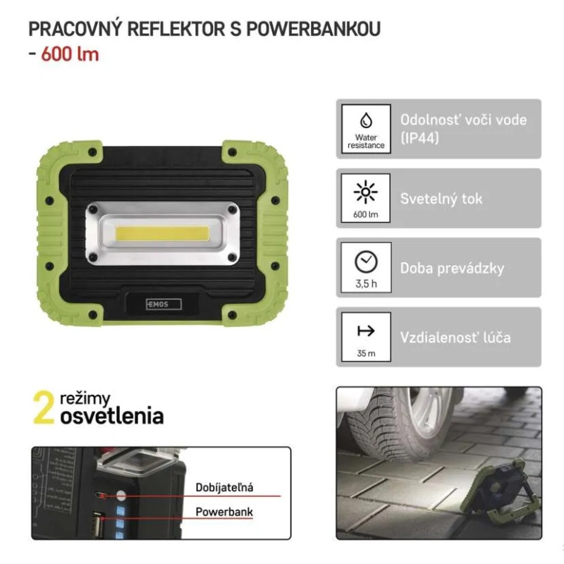 ► Na prvý pohľad spoznáte, že to nie je žiadny obor, ale práve v tom sa skrýva jeho kúzlo. Či už sa doslova živíte rukami (ako elektrikár, inštalatér alebo plynár), alebo len vlastníte rodinný dom, kde je stále čo budovať a opravovať, bude vám nepretržite kryť chrbát. Oproti bežným pracovným svetlám má oveľa vyšší svetelný tok (až 600 lm), 5W COB LED čip, 2 režimy svietenia (100 % alebo 50 %) a praktický stojan. Vďaka nemu nemusíte pri práci držať reflektor v ruke (tak ako baterku), ale postavíte si ho presne tam, kde je najviac potrebný. A to najlepšie na koniec, ako nabíjací LED reflektor vás netrápi večným hľadaním zásuvky.