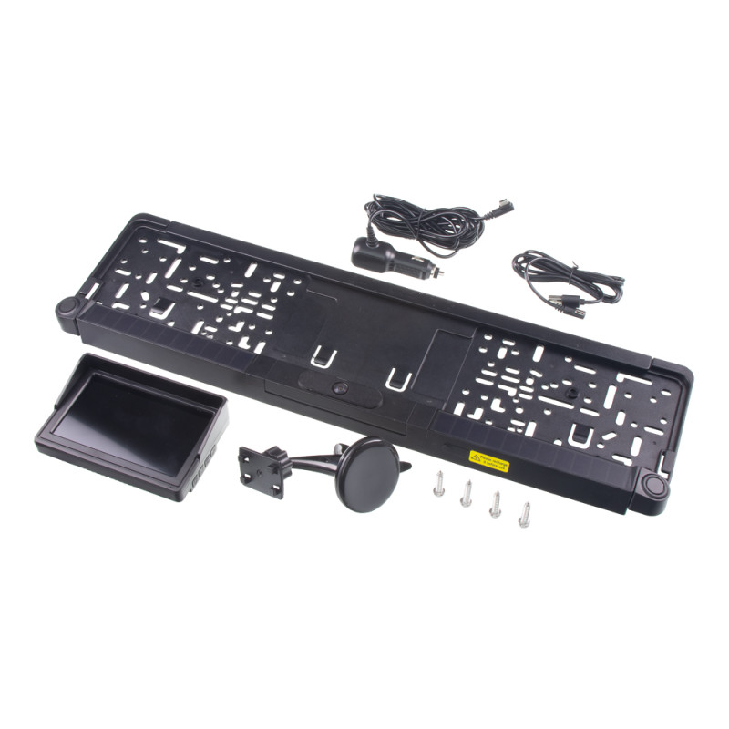 Sada LCD monitoru 5" a kamery s 2 čidly integrované do SPZ rámečku se solárním napájením s bezdrátovým digitálním přenosem signálu.