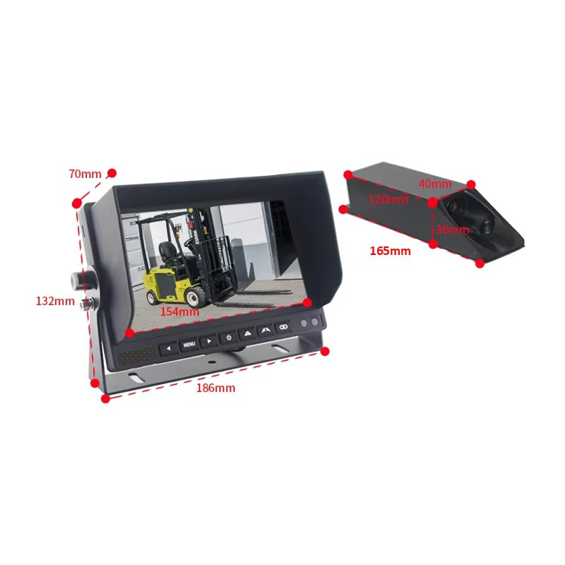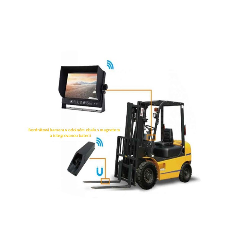 Sada LCD monitoru 7" a AHD kamery s bezdrátovým digitálním přenosem signálu určeno pro vysokozdvižné vozíky či stavební stroje.