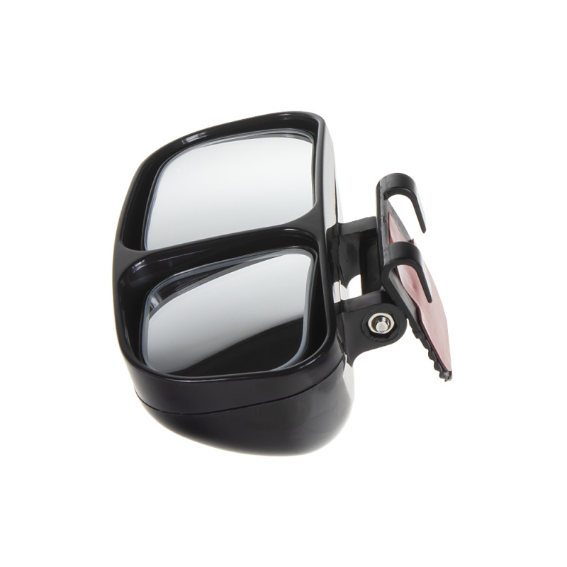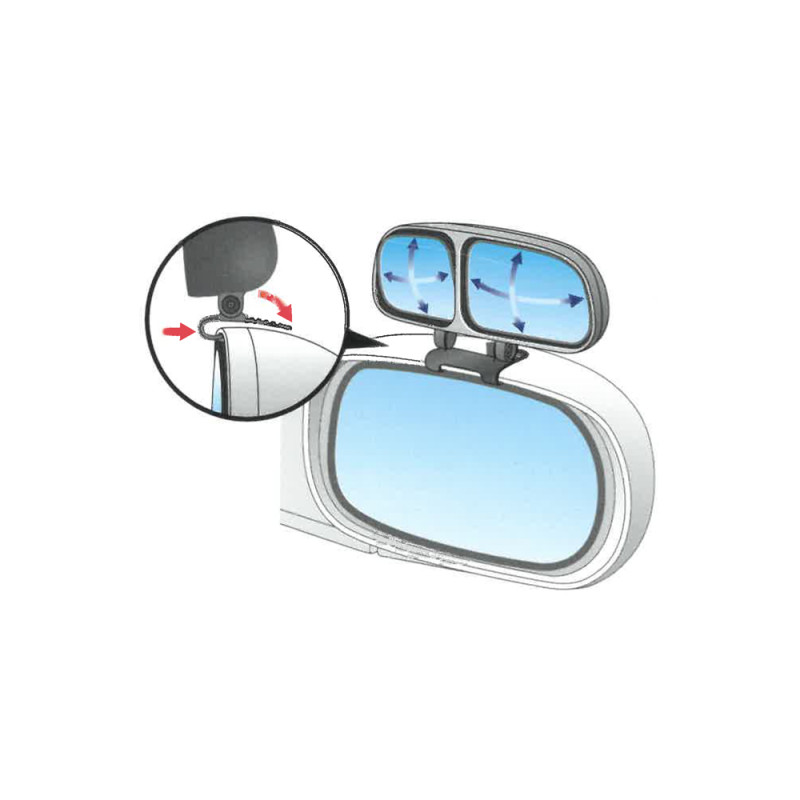 Přídavné zpětné zrcátko výrazně rozšiřuje výhled. Velké zorné pole díky vydutému tvaru zrcátka. Zrcátko se jednoduše připevní pomocí držáku s lepící páskou na vhodné hladké místo ve vozidle (např.čelní sklo). Optimální nastavení zrcátka díky kulovému kloubu.