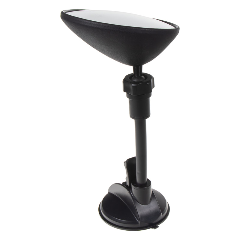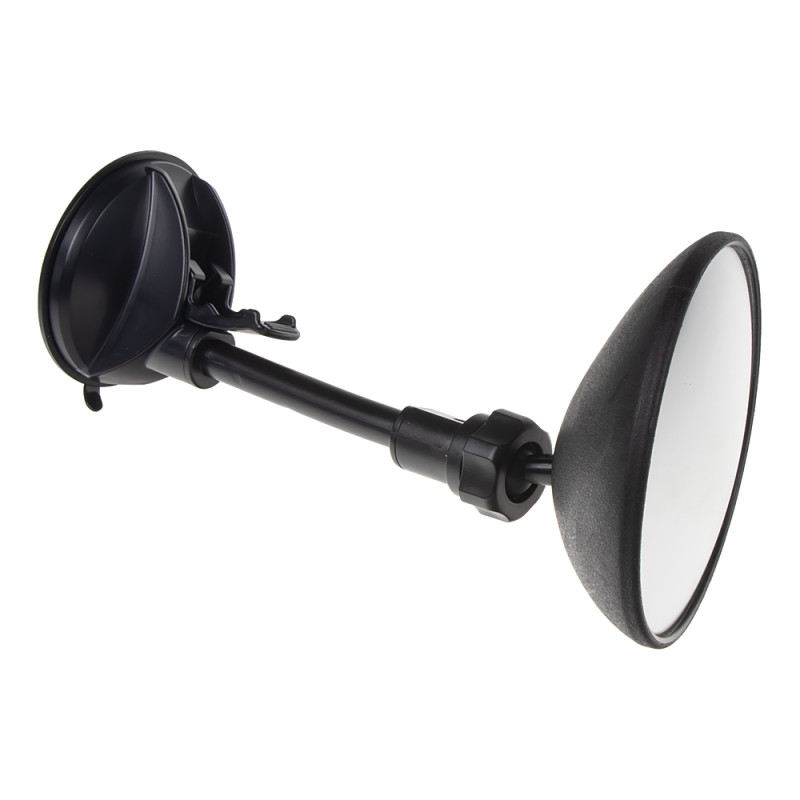 Přídavné zpětné zrcátko výrazně rozšiřuje výhled. Velké zorné pole díky vydutému tvaru zrcátka. Zrcátko se jednoduše připevní pomocí přísavky na vhodné hladké místo ve vozidle (čelní sklo). Optimální nastavení zrcátka díky kulovému kloubu.