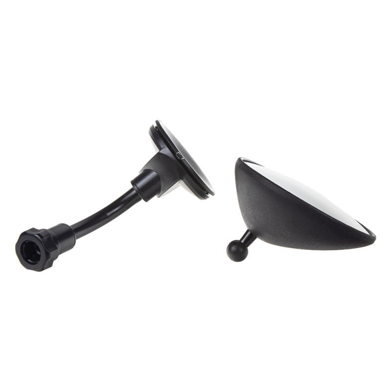 Přídavné zpětné zrcátko výrazně rozšiřuje výhled. Velké zorné pole. Zrcátko se jednoduše připevní pomocí přísavky na vhodné hladké místo ve vozidle (čelní sklo). Optimální nastavení zrcátka díky kulovému kloubu.