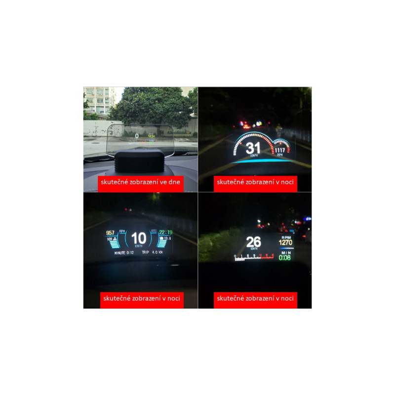 Systém s projekčním HUD displejem s vysokou čitelností, během jízdy systém promítá údaje o rychlosti nebo jednu z 10 veličin do zorného pole řidiče přímo na přední sklo. Systém se připojuje pouze do OBD zásuvky.