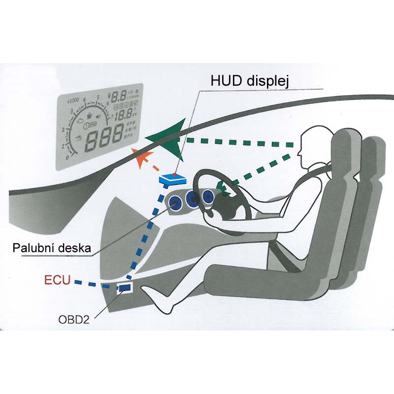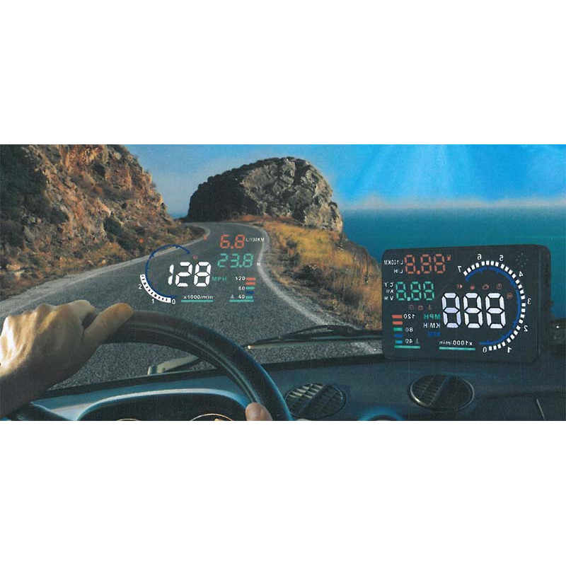Systém s projekčním HUD displejem s vysokou čitelností, během jízdy systém promítá údaje o rychlosti nebo jednu z 10 veličin do zorného pole řidiče přímo na přední sklo. Systém se připojuje pouze do OBD zásuvky.