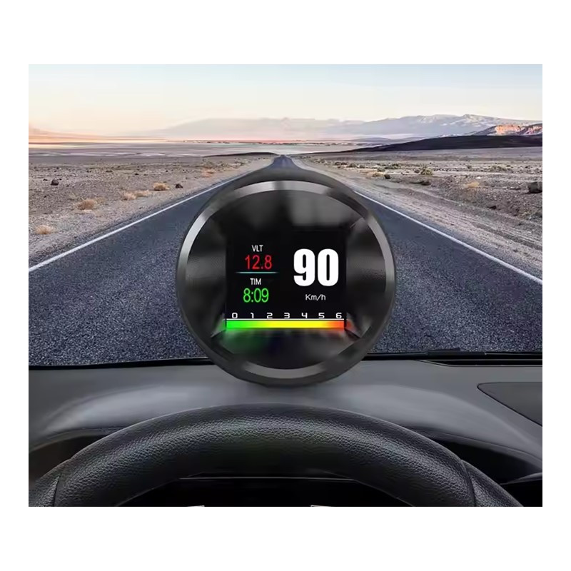 Palubní OBD displej s vestavěným víceosým gyroskopem, který dokáže měřit sklon a náklon, stupeň sjezdu a stoupání vozidel během jízdy, údaje o rychlosti, otáčky motoru, teplotu chladící kapaliny, napětí baterie a další údaje na přehledném barevném LCD displeji.