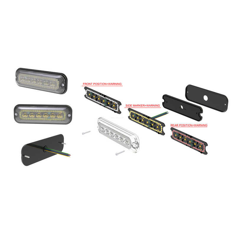 Přídavné boční obrysové (poziční) oranžové LED světlo s oranžovým vystražným světlem (predátorem), vhodné k osvětlení nákladních vozidel, kamionů, návěsů.