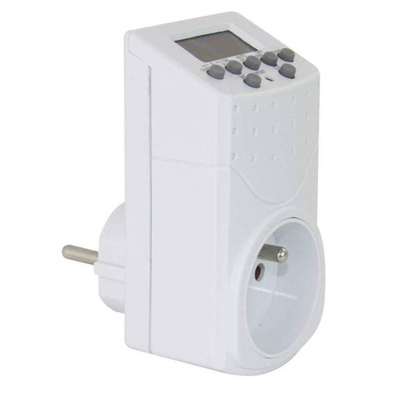 ► Plne programovateľná spínacia zásuvka s týždenným aj denným cyklom spínania. Tieto spínacie hodiny môžu aj vo Vašej neprítomnosti opakovane spínať a vypínať napríklad kúrenie, lampu alebo rádio. Programovanie je veľmi jednoduché, takže hodiny sú vhodné aj pre ľudí so záporným vzťahom k technike. Ďalšie príklady použitia: kúrenie ráno pre vstávanie, obmedzenie času sledovanie televízie deťmi, vyhriatie garáže pred tým, než by ste inak museli sadnúť do "vymrznutého auta" a naviac nemohli pre zimu poriadne naštartovať. Najlepšia ochrana proti zlodejom je, keď si myslia, že ste doma. Tieto hodiny môžu vo vašej neprítomnosti spínať lampu alebo rádio, a tým navodiť dojem prítomnosti osoby v byte, či dome