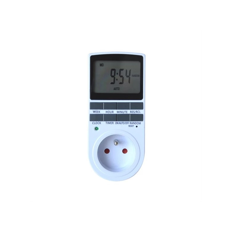 ► Plne programovateľná spínacia zásuvka s týždenným aj denným cyklom spínania. Tieto spínacie hodiny môžu aj vo Vašej neprítomnosti opakovane spínať a vypínať napríklad kúrenie, lampu alebo rádio. Programovanie je veľmi jednoduché, takže hodiny sú vhodné aj pre ľudí so záporným vzťahom k technike. Ďalšie príklady použitia: kúrenie ráno pre vstávanie, obmedzenie času sledovanie televízie deťmi, vyhriatie garáže pred tým, než by ste inak museli sadnúť do "vymrznutého auta" a naviac nemohli pre zimu poriadne naštartovať. Najlepšia ochrana proti zlodejom je, keď si myslia, že ste doma. Tieto hodiny môžu vo vašej neprítomnosti spínať lampu alebo rádio, a tým navodiť dojem prítomnosti osoby v byte, či dome