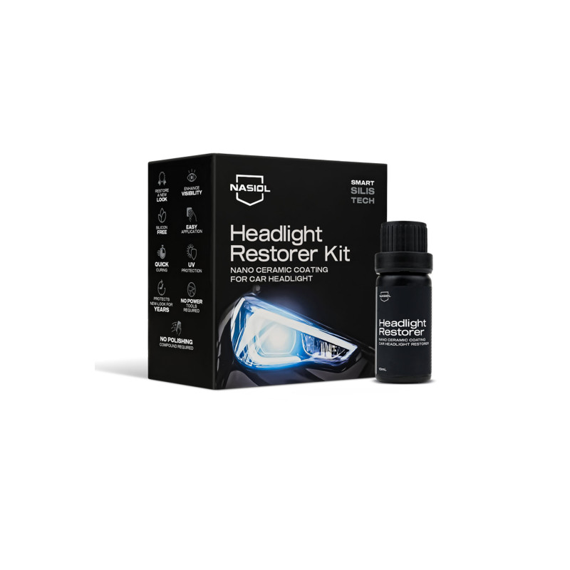 ► Nasiol HEADLIGHT RESTORER je ideálny na jednoduchú obnovu zaoxidovaných a zažltnutých svetlometov bez potreby použitia brúsnych zmesí. Efektívne odstraňuje zákal, obnovuje čírosť a dodáva svetlometom žiarivý a dlhotrvajúci lesk. Súčasťou balenia je aj nano keramický povlak, ktorý poskytuje ochranu pred UV žiarením, čím predlžuje životnosť svetlometov a bráni ich ďalšej oxidácii a žltnutiu