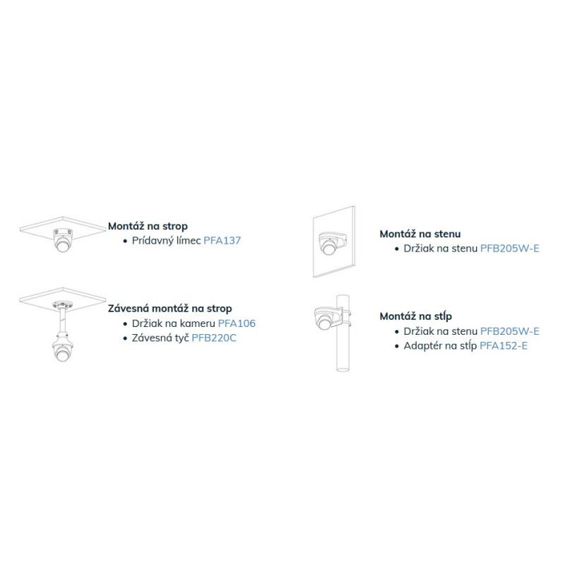 ► Horizontálne otáčanie: 0°–360°, vertikálny náklon: 0°–78°, otáčanie: 0°–360°