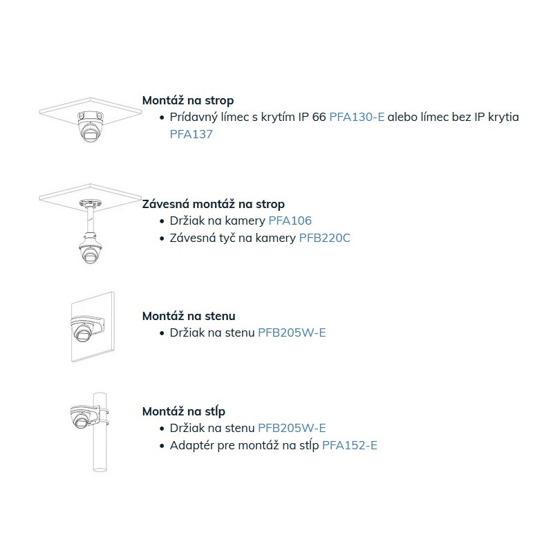 ► Uhol záberu: H: 107°–34°, V: 55°–19°, D: 130°–39°, horizontálne otáčanie: 0°–360°, vertikálny náklon: 0°–78°