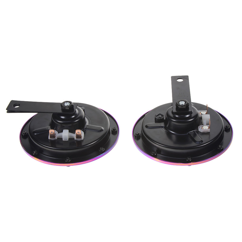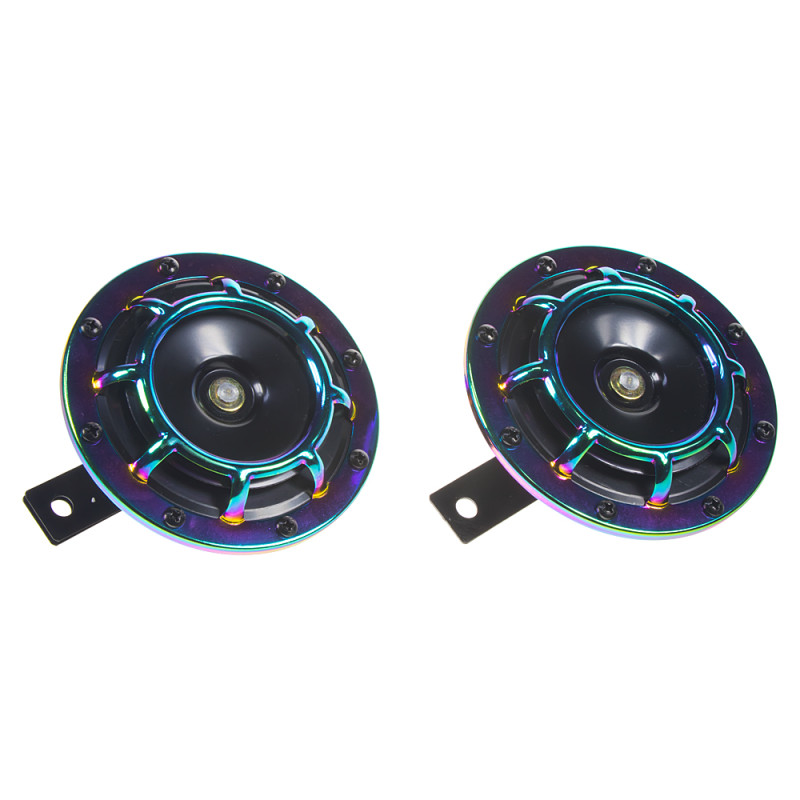 Diskové klaksony s hezkým pohledovým designem, určené např. jako alternativní náhrada originálních klaksonů ve všech vozidlech nebo motocyklech. Souzvuk obou klaksonů s různými tóny (vysoký a nízký) se vyznačuje velice ostrým a výrazným projevem.