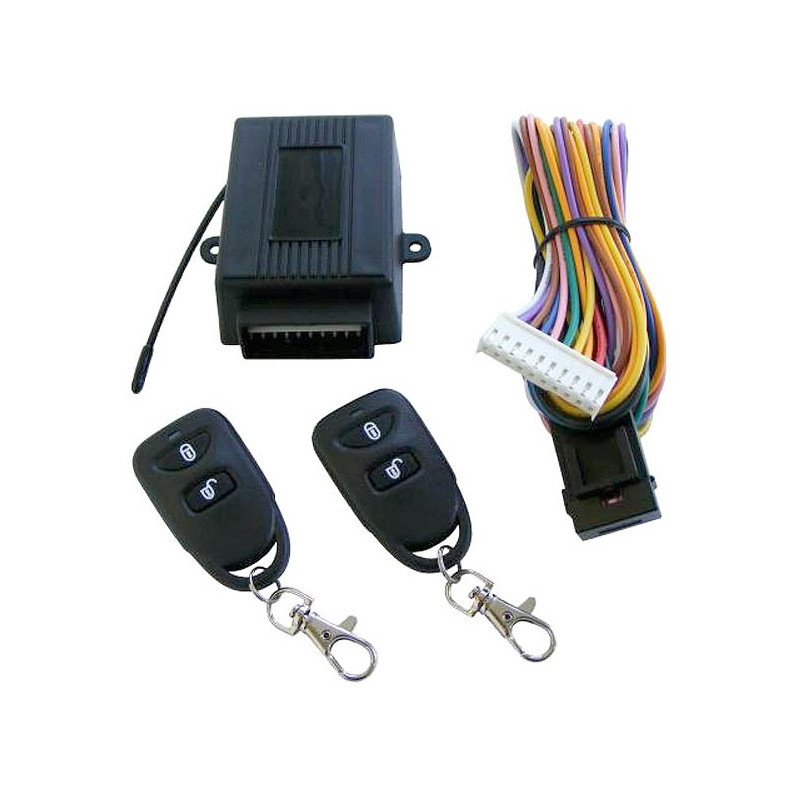 ► Univerzálny modul diaľkového ovládania centrálneho zamykania. Dokáže ovládať akékoľvek existujúce centrálne zamykanie, ovládané mechanicky - kľúčom. K modulu sa dodávajú 2 ks diaľkových ovládačov, ktoré komunikujú s riadiacou jednotkou plávajúcim kódom. Do modulu je možné naprogramovať celkovo až 6 diaľkových ovládačov. Modul má reléové výstupy odomykania a zamykania, reléový výstup pre otváranie kufra a rovnako reléový výstup na svetlá. Pomocný tranzistorový výstup AUX je možné využiť na doťahovanie okien vo vozidlách VW group, prípadne na ovládanie prídavného zariadenia (napr. strešné okno, naviják). Je ho možné variabilne nastaviť podľa požiadaviek na konkrétne vozidlo