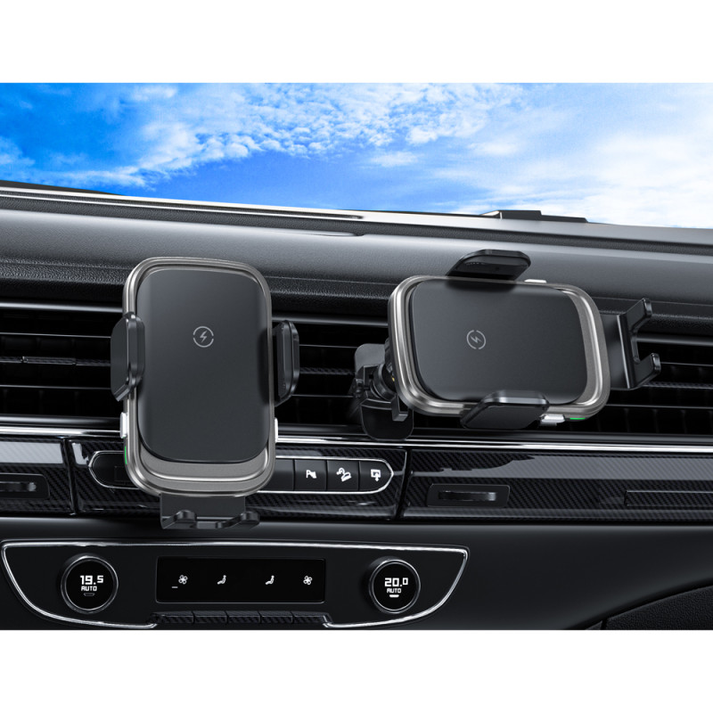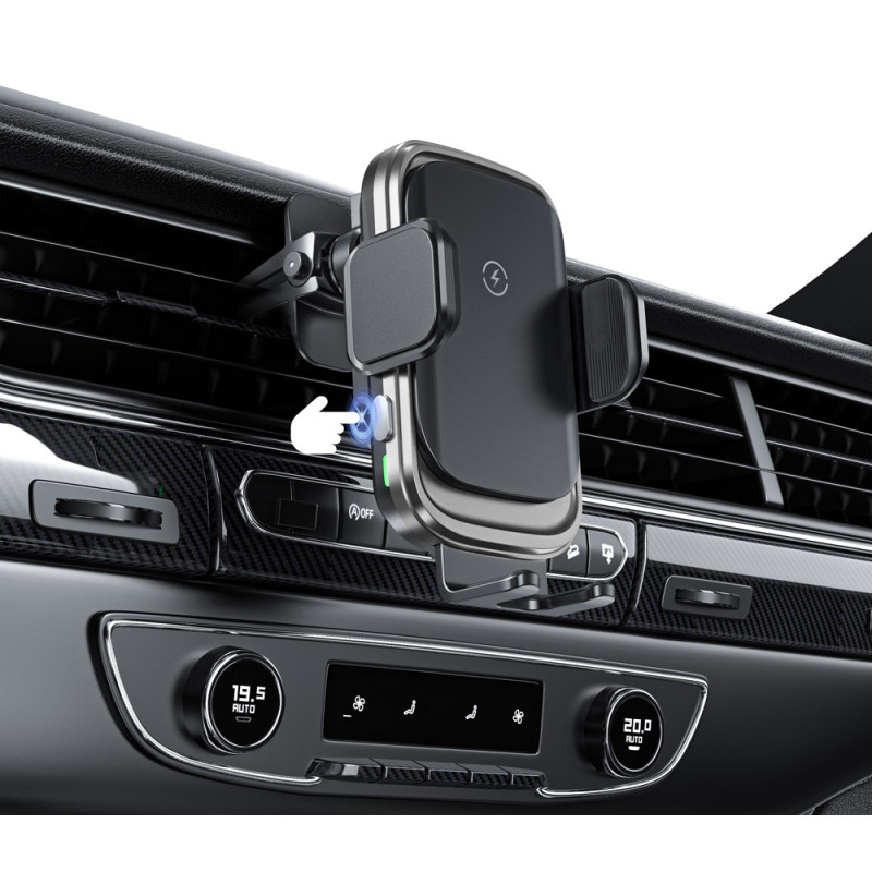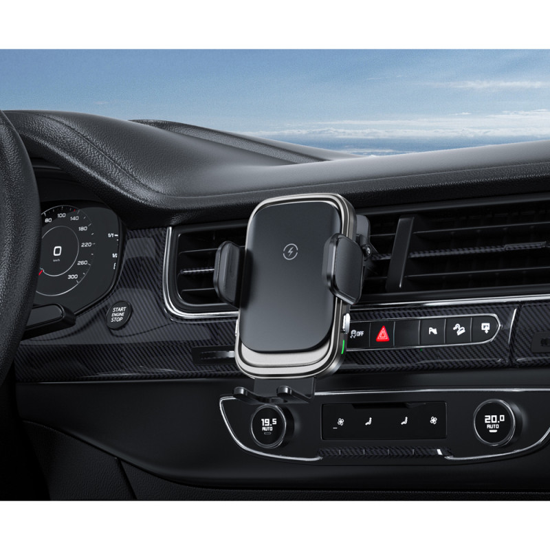 Univerzální magnetický držák do auta s bezdrátovým nabíjením 15 W (MagSafe compatible) má zabudované bezdrátové nabíjení.