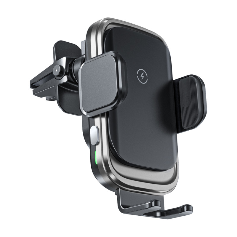 Součástí držáku je bezdrátové nabíjení pomocí standartu QI. světelné indikátory v ramenech držáku idikují stav držáku a nabíjení pomocí různých barev.