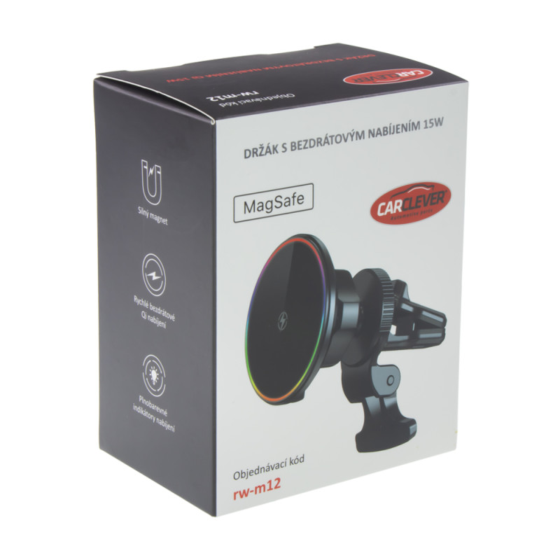 Univerzální magnetický držák do auta s bezdrátovým nabíjením 10 W (MagSafe compatible) má zabudované bezdrátové nabíjení.