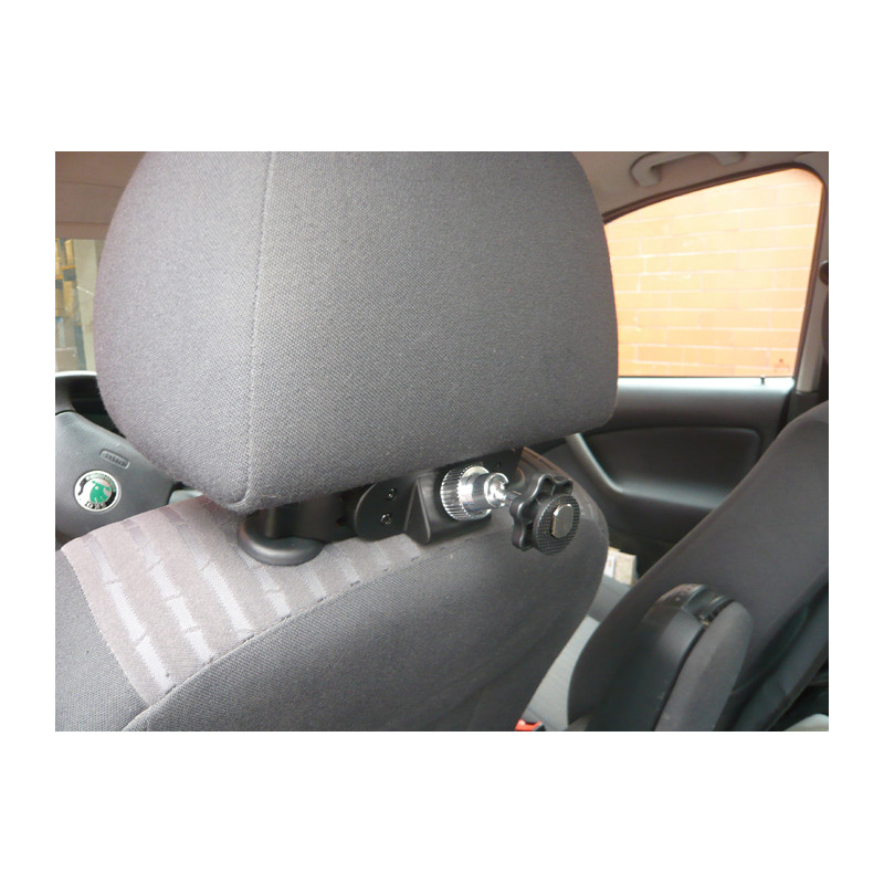 velice robustní držák pro umístění monitoru na opěrku sedadla