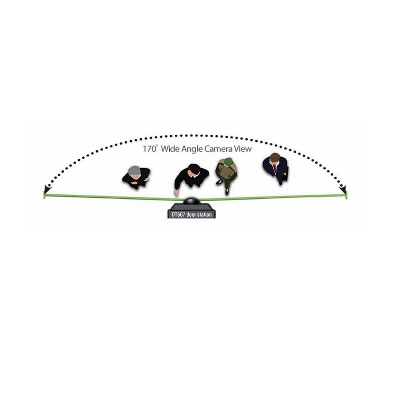 ► Jednotlačidlová kovová dverná jednotka pre dvojvodičový systém Easydoor. Zariadenie má integrovanú RFID čítačku pracujúci na frekvencii 125 kHz, podsvietený menný štítok, LED indikáciu a krytie IP 43. Vstavaná farebná kamera zaberá scénu v uhle 170° a je vybavená LED prisvietením pre nočný režim.► Dverná kamerová jednotka farebná s jedným tlačidlom a 125 kHz RFID čítačkou, kapacita 320 kariet, podsvietená menovka a LED indikácia, prevedenie kov, prisvetlenie snímaného priestoru, širokouhlá kamera 170°, IP 43, 12 V DC alebo relé ovládanie pre 1 zámok, pridávanie/odoberanie kariet cez master karty, rozmery 179 x 94 x 42 mm, so strieškou, napájanie 24 V DC zo zbernice systému, montáž na omietku, dvojvodičový systém zapojenia – nepolarizovaný, odporúčaný netienený krútený pár, min. 2x 1 mm
