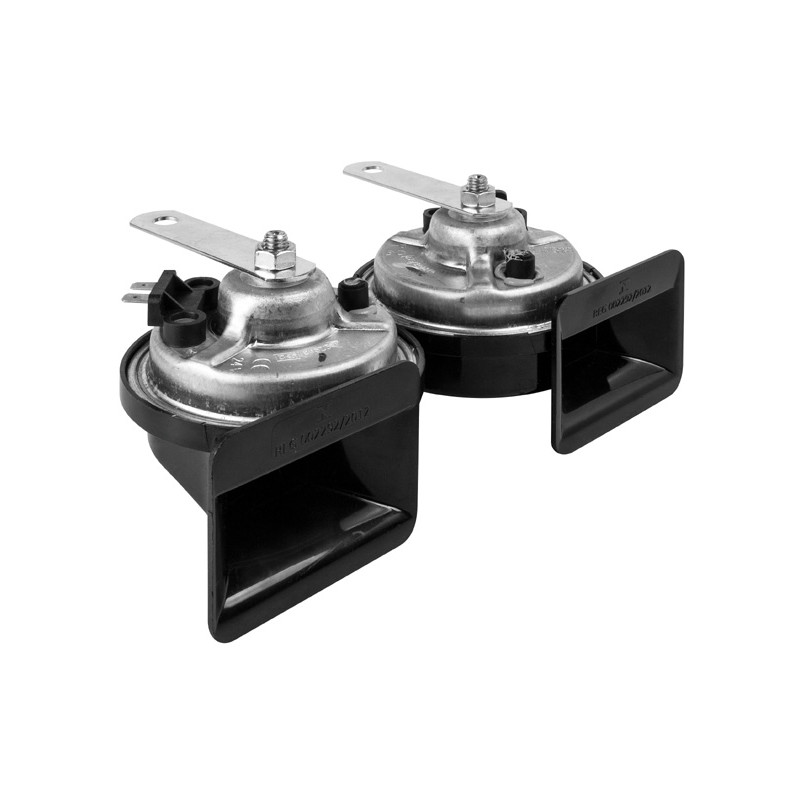 Diskové klaksony s hezkým pohledovým designem, určené např. jako alternativní náhrada originálních klaksonů ve všech vozidlech nebo motocyklech. Souzvuk obou klaksonů s různými tóny (vysoký a nízký) se vyznačuje velice ostrým a výrazným projevem.