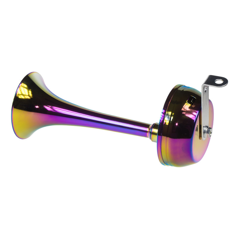 Elektromagnetická fanfára, chromová s duhovým zabarvením, vysoký tón.